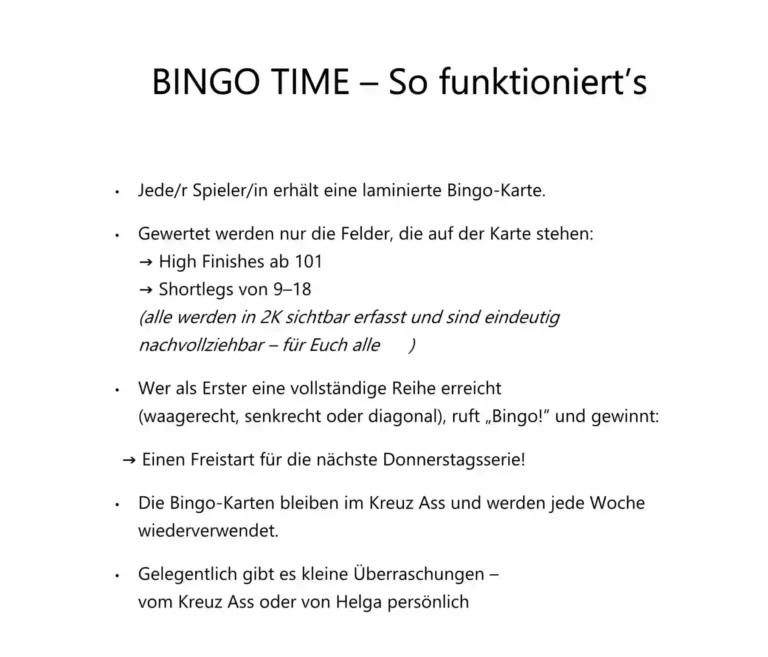 Bei der Donnerstagsserie wechseln Bingo Time und Jackpot Dart automatisch im festen Rhythmus.
